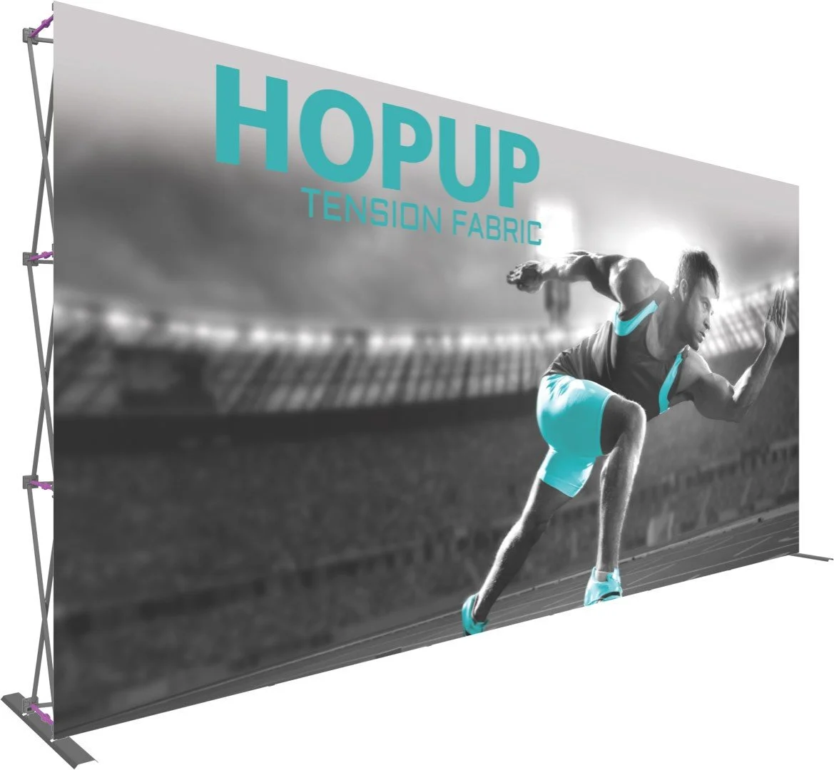 The SEG trade show display system creates a professional and eye-catching appearance at trade shows and other events. It consists of a large frame structure that is covered in SEG (silicone edge graphic) fabric graphics. The frame is made of lightweight aluminum, and the graphics are printed onto the fabric using a dye-sublimation process. The fabric is then attached to the frame using a rubber strip sewed onto the edge of the graphics that tucks easily into the channels on the frame. The result is a lightweight, wrinkle-free, and easy-to-assemble display system that provides a clean, professional look. The SEG trade show display system is ideal for businesses looking to make a strong impression at trade shows and events.