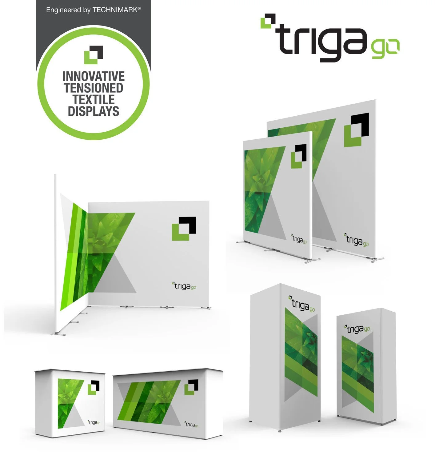The Triga system is an ideal choice for trade shows, events, and interior spaces due to its customizable components, *no-tool installation*, versatility, and environmental sustainability. It is a modern and sophisticated solution that is both aesthetically pleasing and practical. The materials used are completely recyclable, making it a sustainable choice.